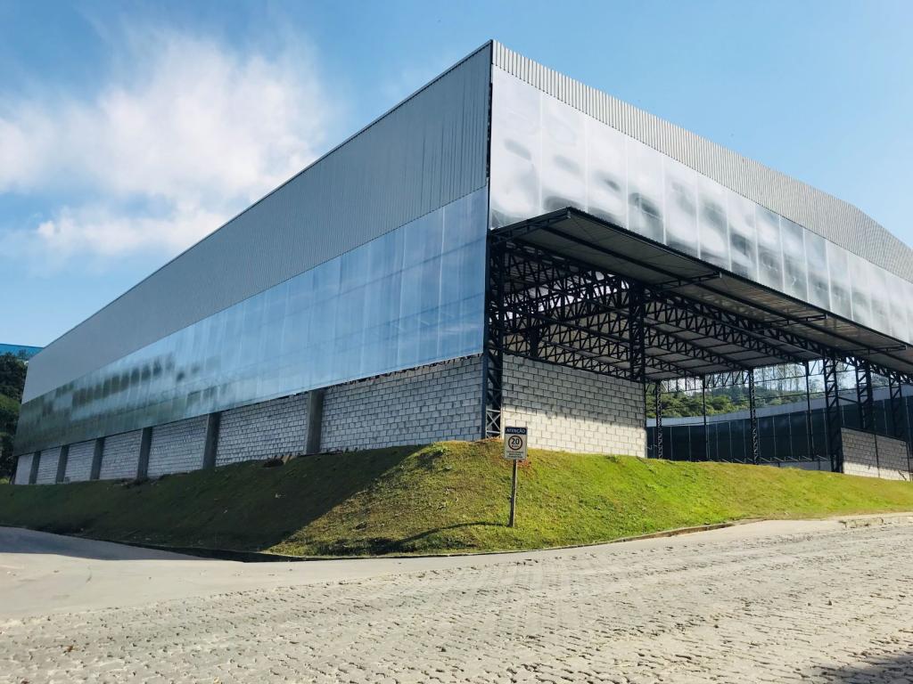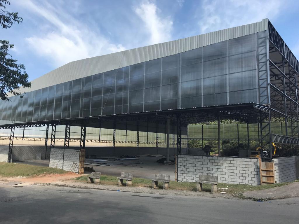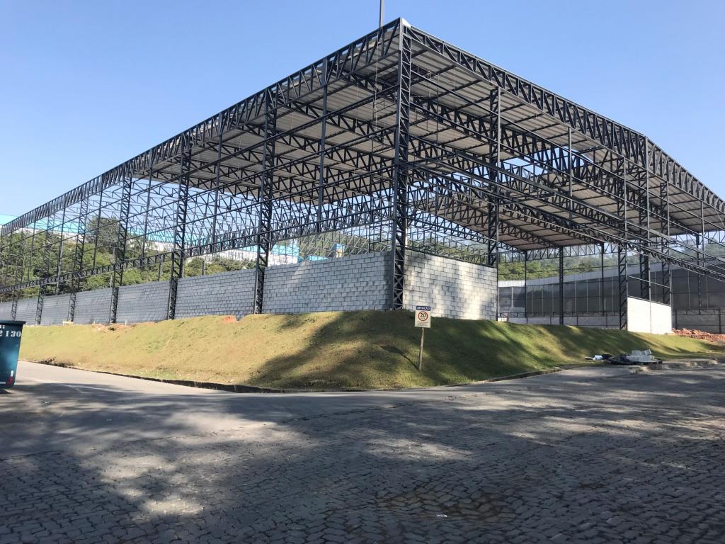 Galpão medindo 50,00 m de largura por 70,00 m de comprimento com 12,00 m de altura livre;